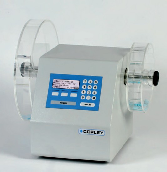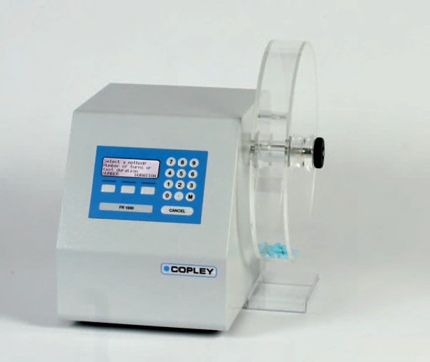 The basic Friability Tester comprises of a drum and a motor capable of rotating the drum at 25 rpm. The standard friability drum has an inside diameter of 287 mm and a depth of 38 mm and is fitted with a curved baffle which subjects the tablets to be tested to a drop of 156 mm.