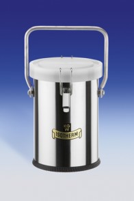 For the evaporation rates of Dewar flasks mentioned in the catalogue, the flasks were covered with the appertaining lid respective plug, and were verified with the coolants (liquid nitrogen, or dry ice) mentioned in the catalogue. The figures (evaporation rate) are stated in the catalogue in L/h (litres per hour) or as holding time in hours.