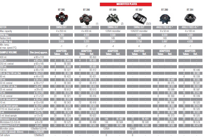 • Shows RPM and RCF, time, temperature, acceleration/deceleration values (PCBS)