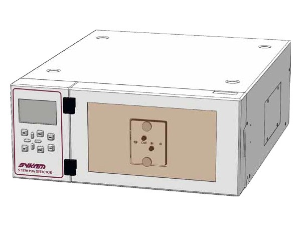 The Sykam S 3350 UV/Vis Detector is a photodiode-array (PDA) detector for routine analysis and sophisticated research. The dual lamp design offers a wavelength range of 190 – 720 nm (256 Diodes) or 190 - 1015nm (1024 diodes) with a low baseline noise. The frontaccessible flowcell can easily be exchanged, as can be the lamps which are accessible through a side panel in the instrument housing.