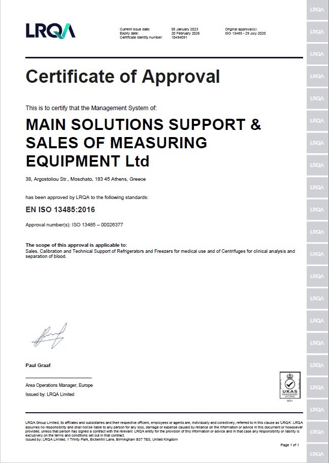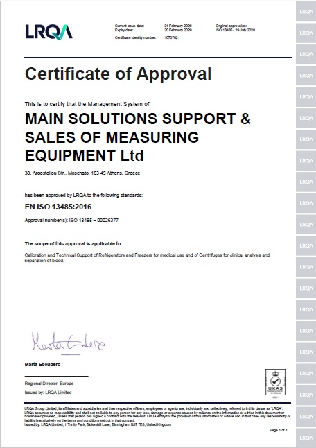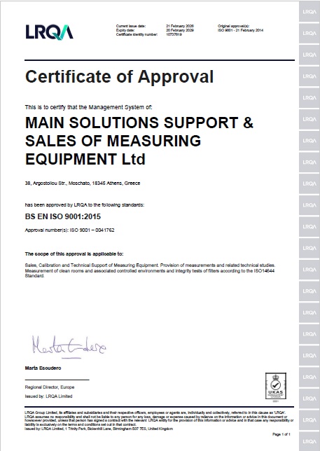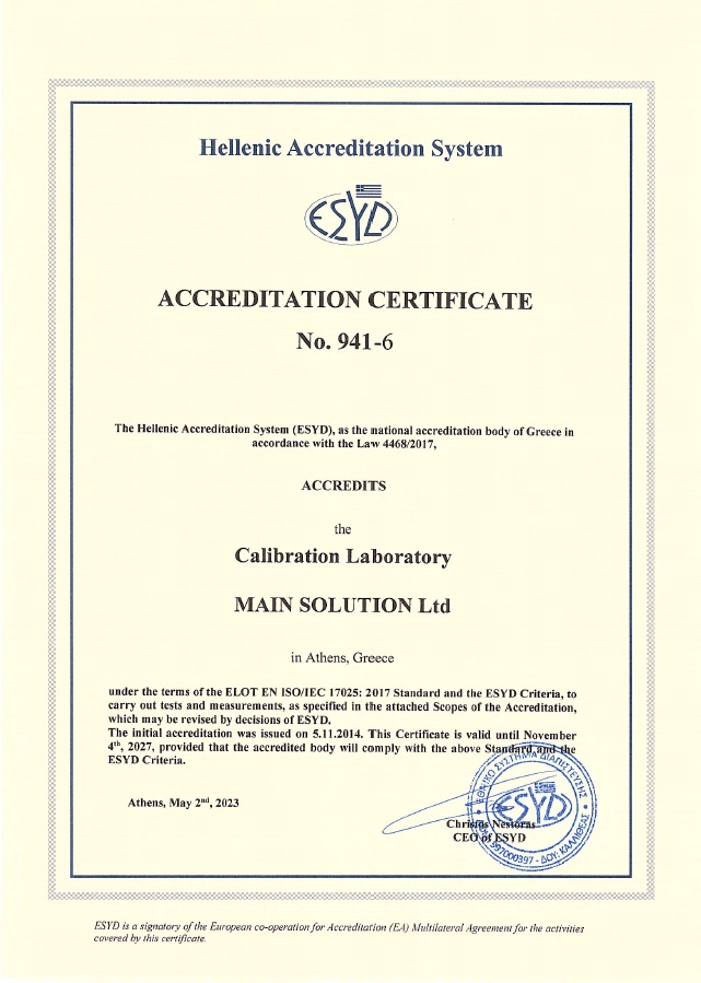 MAIN Solutions’ LABORATORY ACCREDITATION acc. to ISO 17025:2017 by ESYD