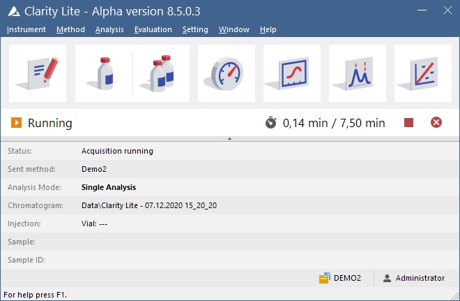 Clarity Lite DEMO version allows you to get your hands on the Clarity software. - Preview all Clarity Lite functions - Experience the look and feel of working with the software - Data acquisition simulated from a data file - Demo data for data processing - Allows to compare functionalities with the full version of Clarity |