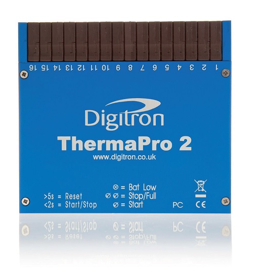 This datalogger is ideal for use within the Food Industry where process profiling is crucial to production efficiency and energy use optimisation. Thermapro 2 dataloggers are user-configurable for any number of inputs from 1 to 16. Channels will accept input from either type K, T thermocouples, or from a 0 -100mV source.  On each model, channels can be configured as a 4, 8 or 16 channel with all channels working independently. Models with 4 or 8 channels can be upgraded for an additional fee.