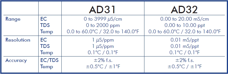 Laboratory Equipment :: Electrochemical Instruments :: Conductivity/TDS meters :: AD31 / AD32 :: Main Solutions