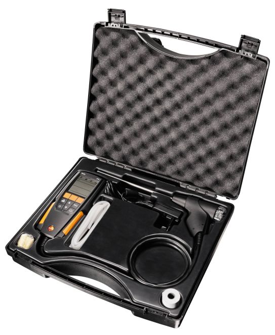Flue Gas Analyser, Hard case, rechargeable battery, usb mains cable, silicon hose for pressure, 5 x filters, calibration protocol, 180mm probe with cone, spare pressure plugs.
