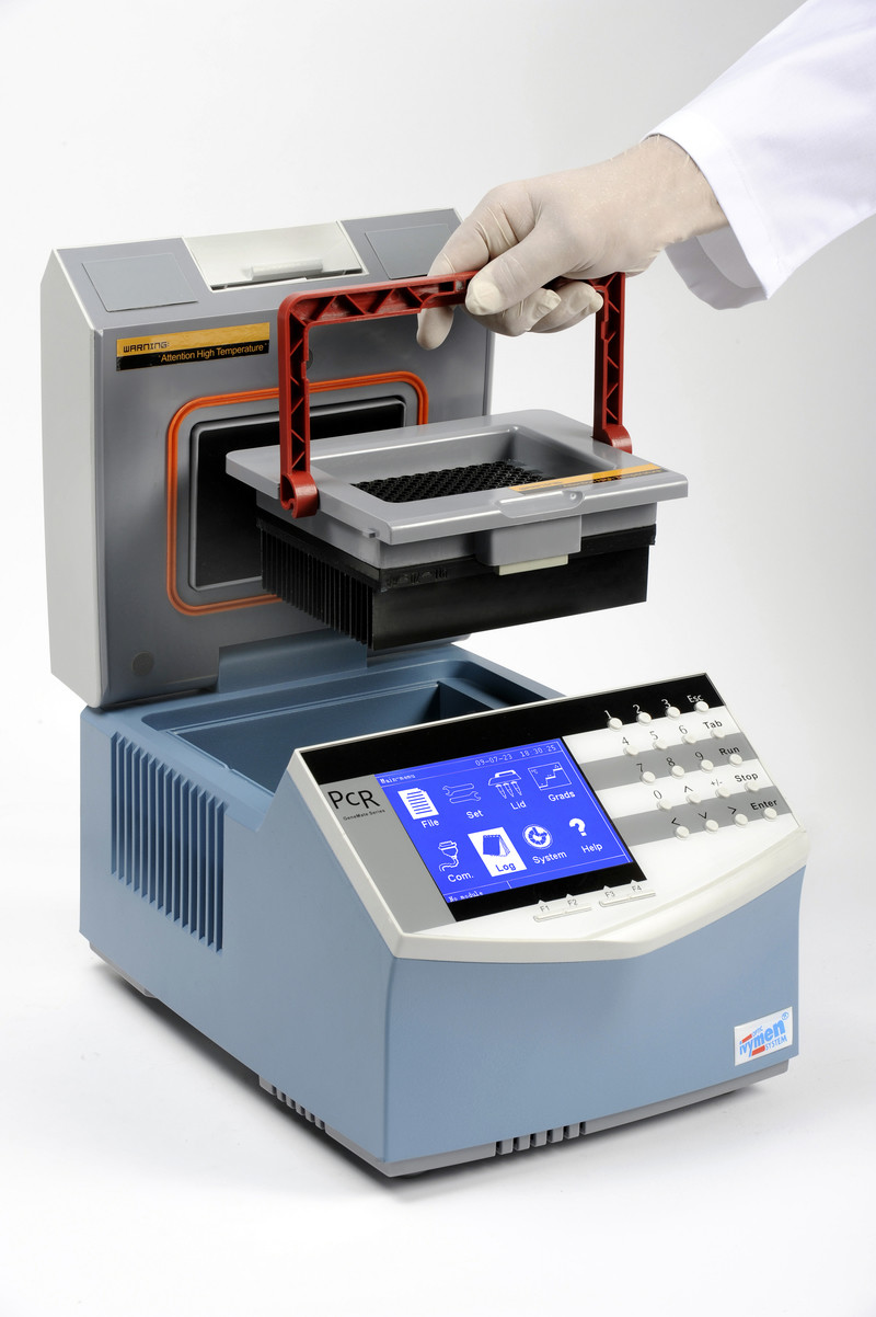 The thermocycler is composed of an inner lid system with heater and with adjustable height in order to perfectly adapt to the samples size. This prevents condensations in the upper side of the samples. The equipment is based on a heat bomb controlled by continuous electric current and composed by several thermo electrical modules of Peltier effect, a low thermal resistance radiator and a fan convention system. As it is integrated in the same block, this system allows increasing the process output and also fast transferring and extracting the block’s temperature, going from the highest temperature level to the lowest in a minimum time. The powerful control microprocessor allows monitoring the point where the process is at any moment, and showing it on the screen with real-time graphic images. There is a useful elaborated software for processes organization, accessible by means of the keyboard and a high resolution LCD screen