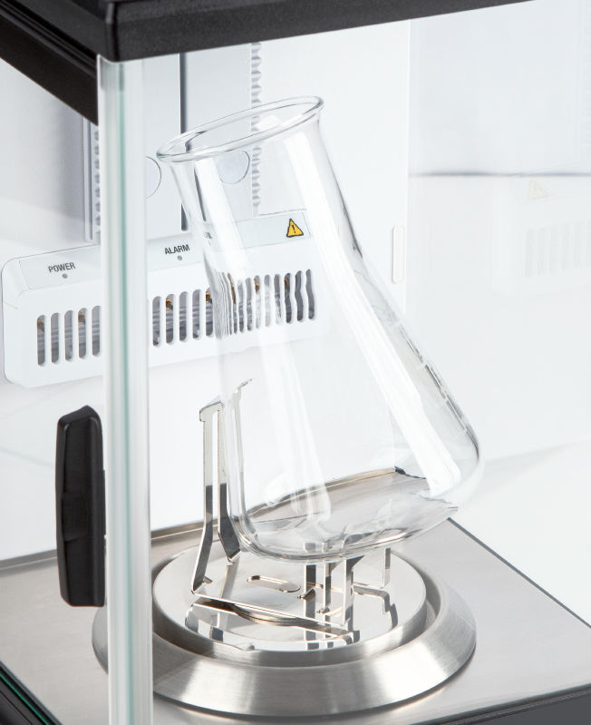 - only for models with readout [d] = 0,00001 g: Multi-function weighing plate included with delivery, minimises the effect of currents of air in the weighing chamber and therefore significantly improves the stabilisation time and repeatability. In addition samples, sample paper, PCR containers, micro centrifuge tubes and many other items which protrude can be easily fixed in place and weighed easily