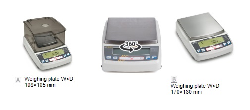 - Draught shield standard, on all models with readout [d] = 0,001 g, weighing space W×D×H 180×193×87 mm