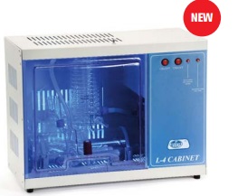 Equipment entirely made of borosilicate glass, with protective case with transparent plastic door that allows an easy access to the glass and heating elements.