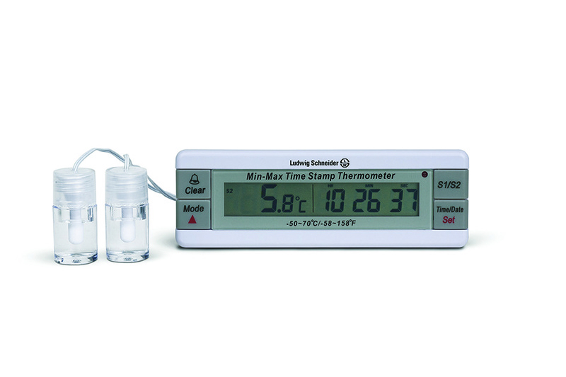 With 2 temperature sensors (cable: 1 m), attached in 5 ml plastic bottles, filled with