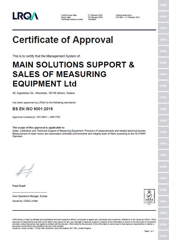 La vente, l'étalonnage, le support technique de l'équipement ainsi que les études techniques, tous sont réalisés et mis en œuvre de manière spécifique et normalisé, dans le cadre de conditions contrôlées et standardiséesselon notre système de qualité en conformité avec les normes ISO 9001:2015 et ISO 17025:2005.